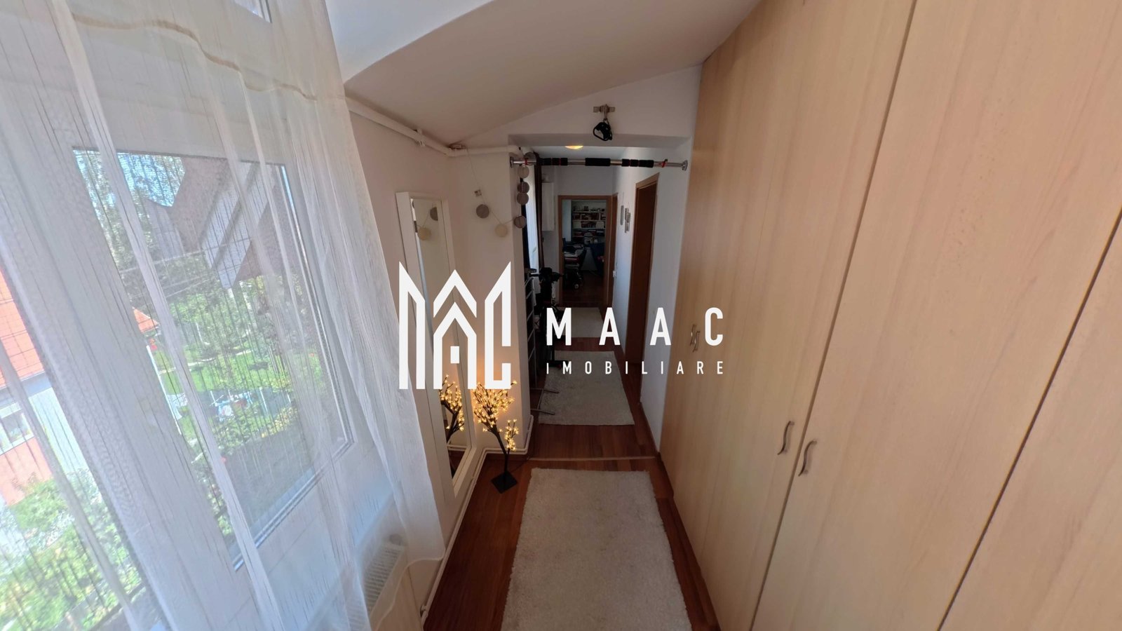 Hol de intrare spațios, prevăzut cu zone de depozitare și lumină naturală