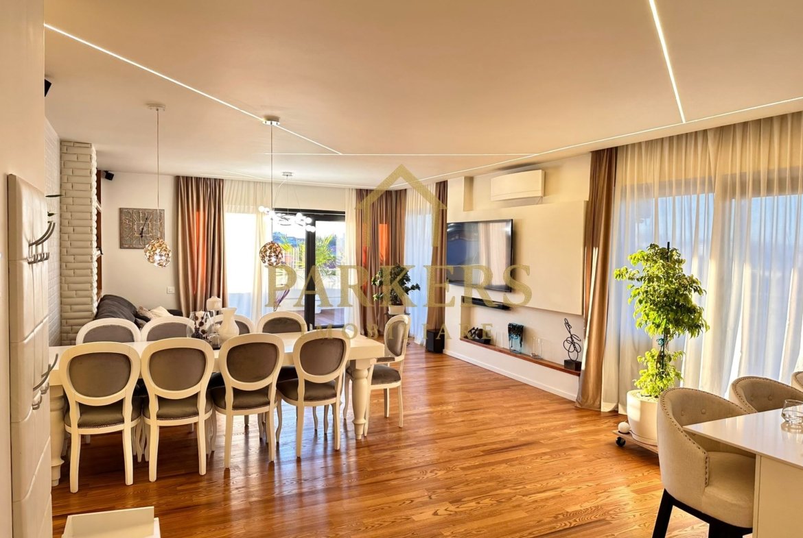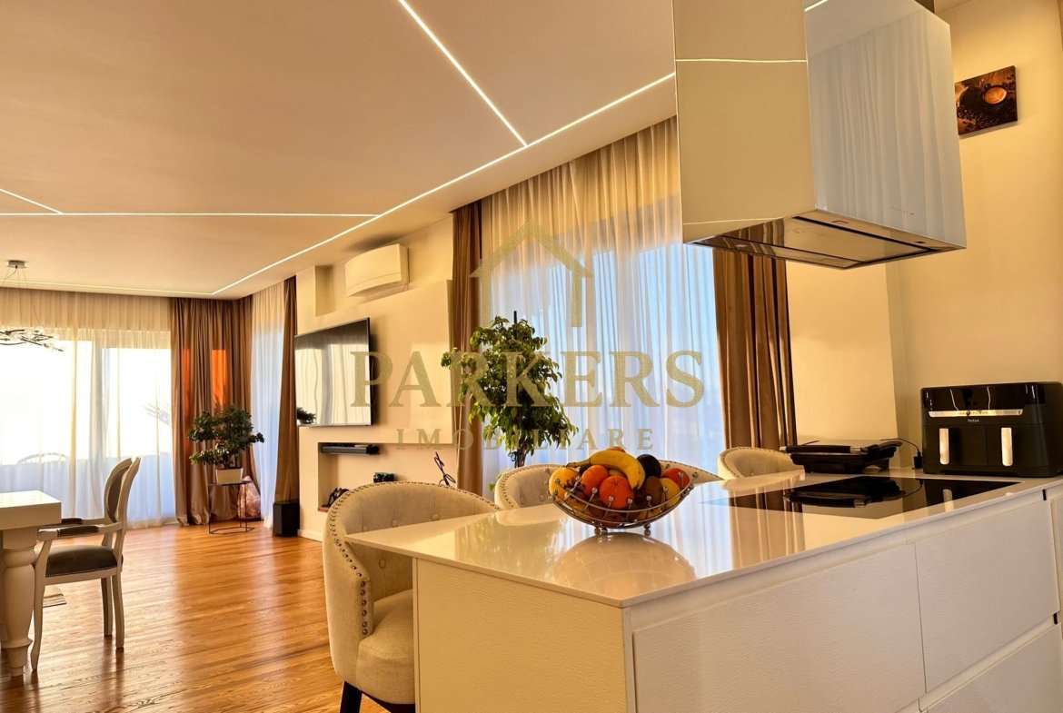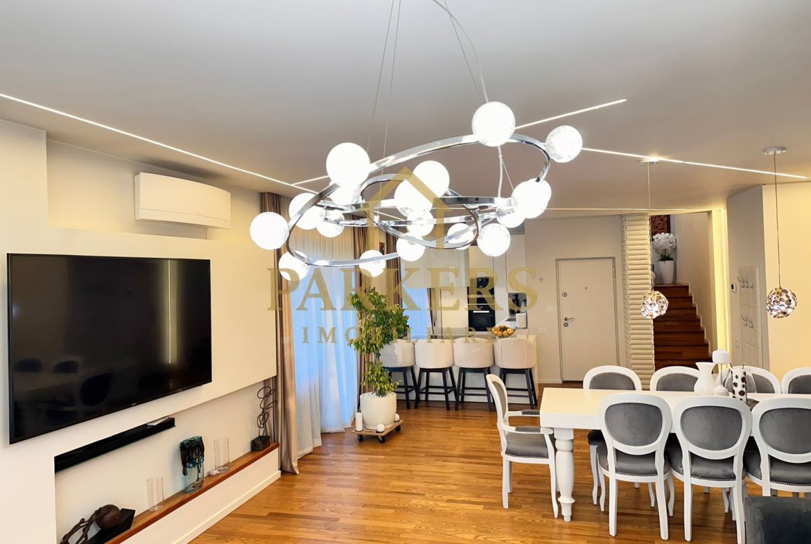 Parkers Imobiliare vă propune spre vânzare un penthouse impresionant, dispus pe două niveluri, cu o suprafață utilă de 180 mp și terase spectaculoase de 250 mp, conceput pentru un stil de viață rafinat, cu accent pe spațiu, intimitate și confort.