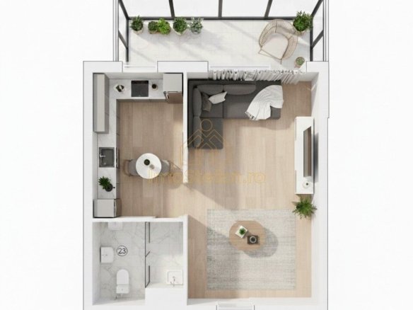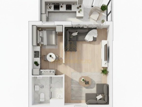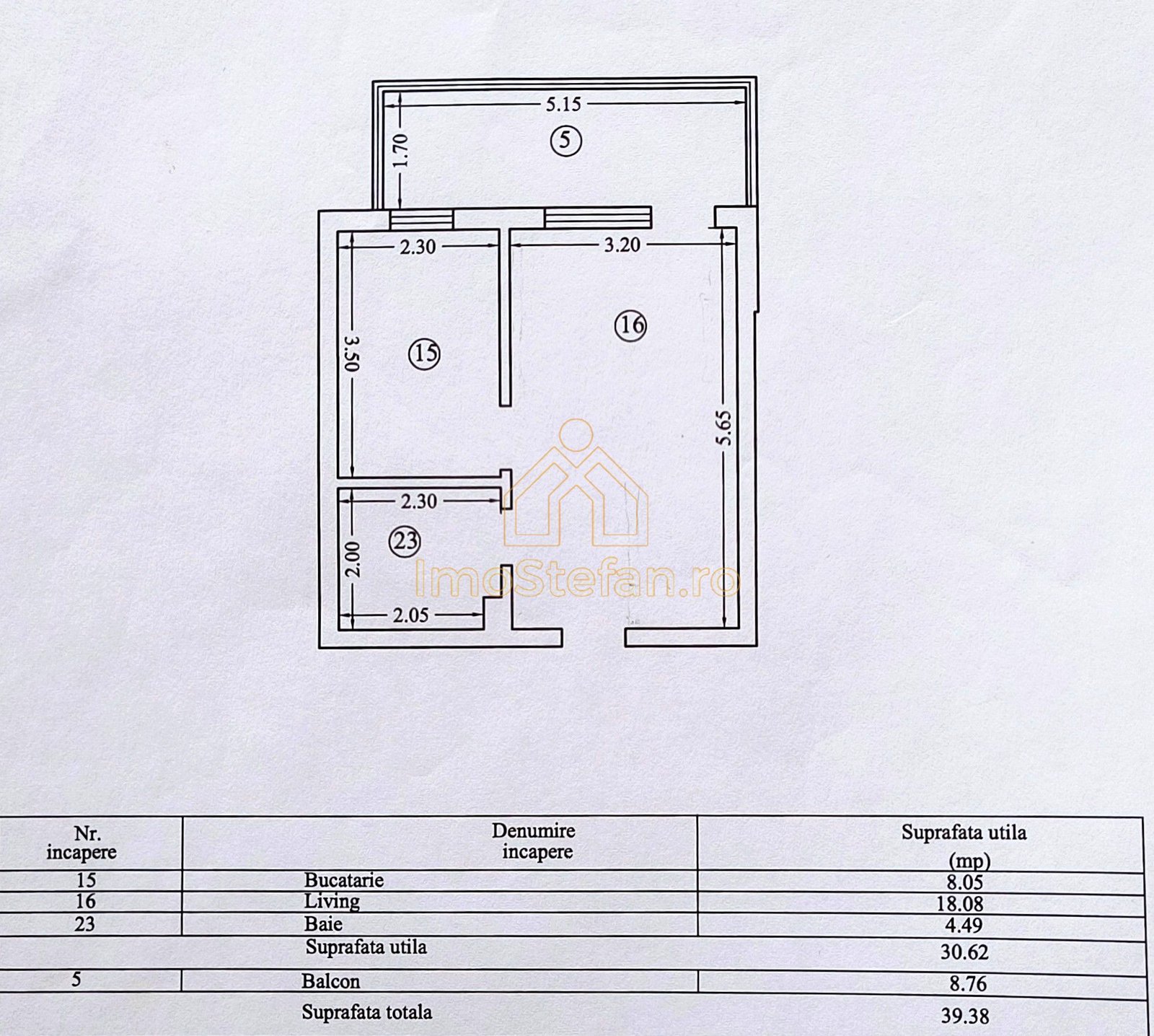 Balcon (Camera 5): Un atu major al acestei garsoniere, având 8.76 mp și o lățime considerabilă de 1.70 m, ideal pentru un spațiu de relaxare sau birou.