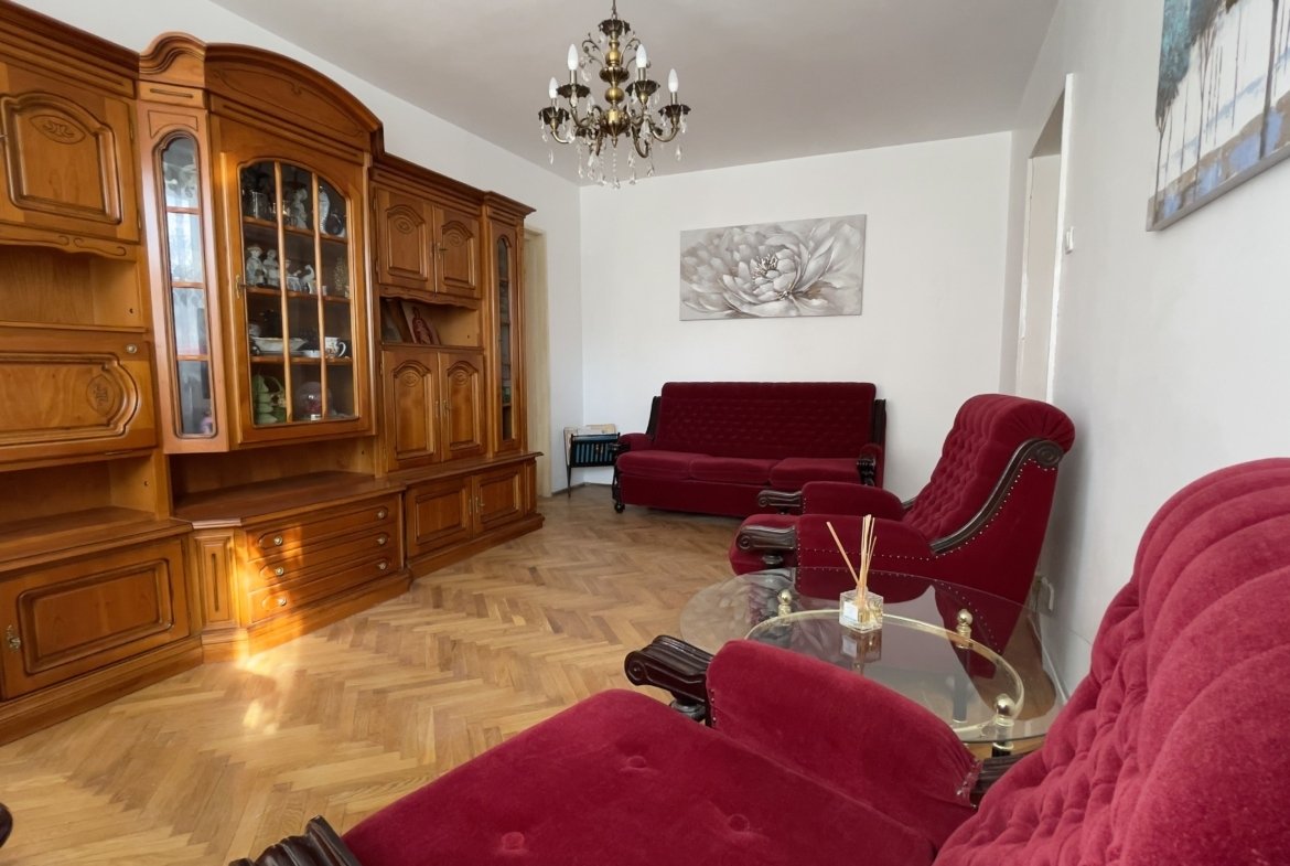 Vând apartament cu 3 camere semidecomandate, 62 mp utili, situat la etajul 1/10, într-un bloc solid monolit, din beton armat, cu compartimentări din cărămidă, anvelopat termic complet, construit în 1964 și fără risc seismic.