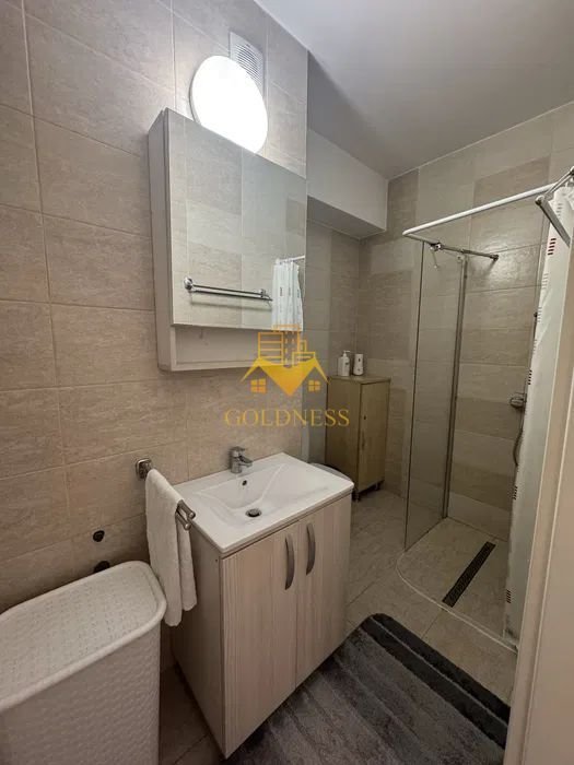– baie cu cabina de dus, calorifer port prosop inox și dulap pentru depozitare.