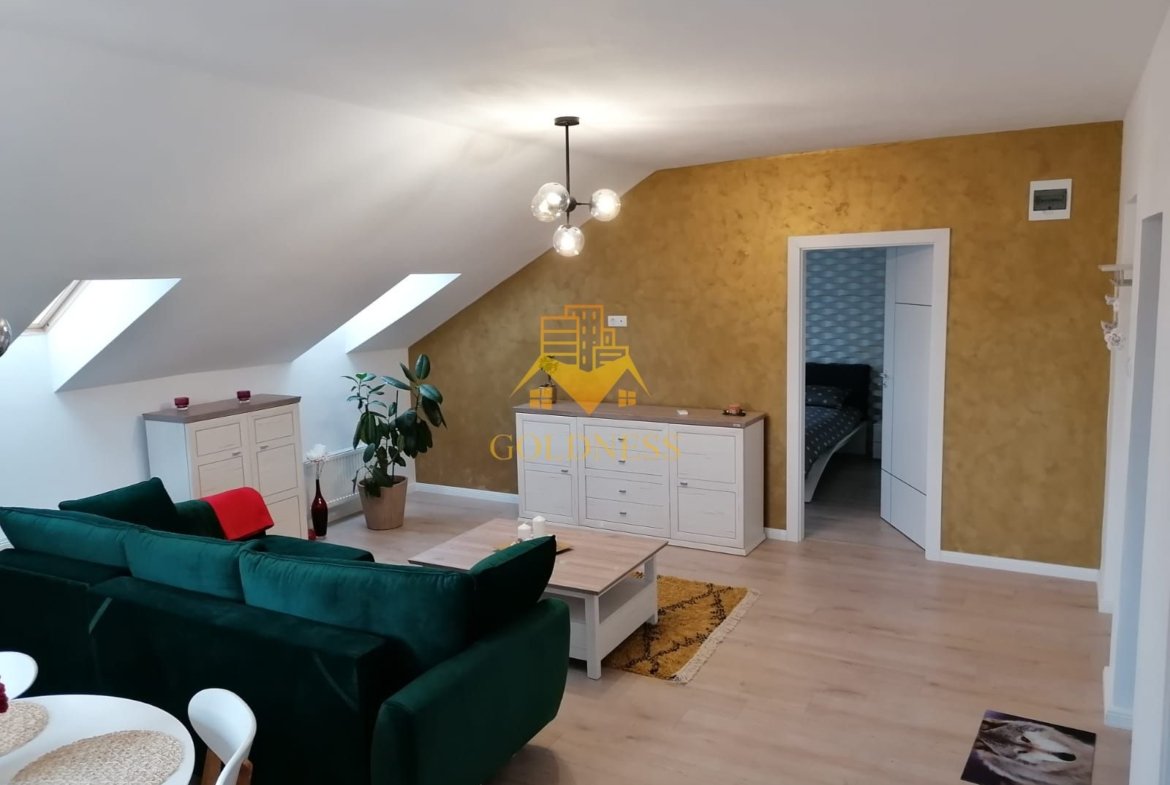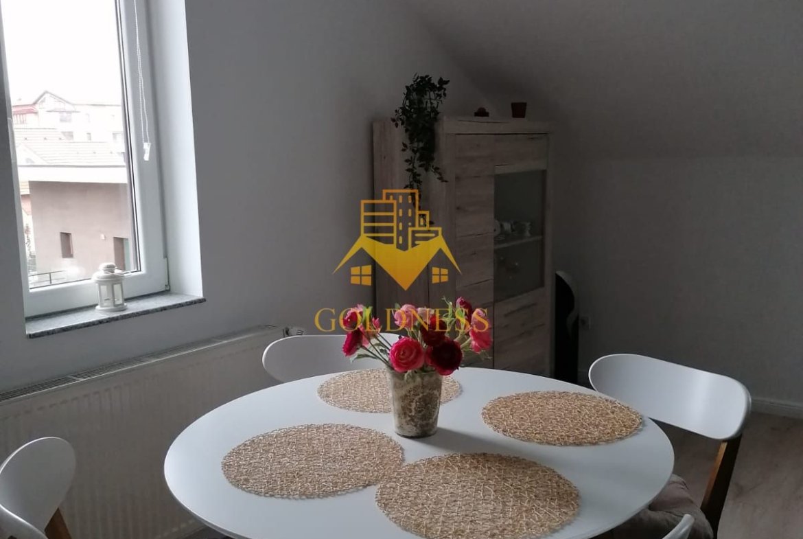GOLDNESS Imobiliare vă propune spre închiriere un apartament cu 2 camere complet mobilat și utilat, la Mansarda într-o vila compusă din D+P+1+M, în cartierul Europa.