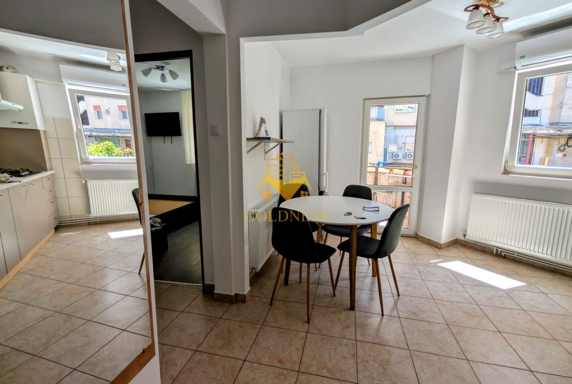 GOLDNESS Imobiliare vă propune spre închiriere un apartament luminos și spațios cu 2 camere decomandate, având o suprafață utilă de 55 mp. Acesta este situat la etajul 1 al unui imobil în cartierul Mărăști.