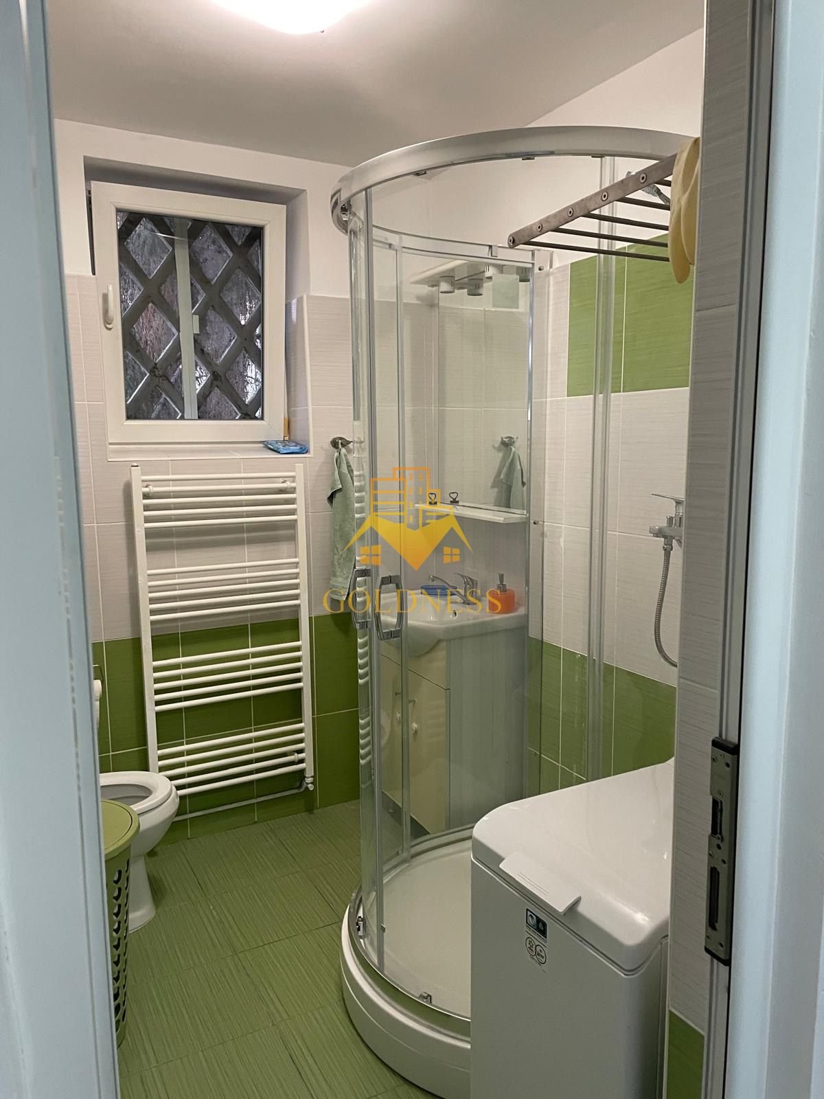 – baie cu cabina de dus, calorifer port prosop și dulap pentru depozitare.
