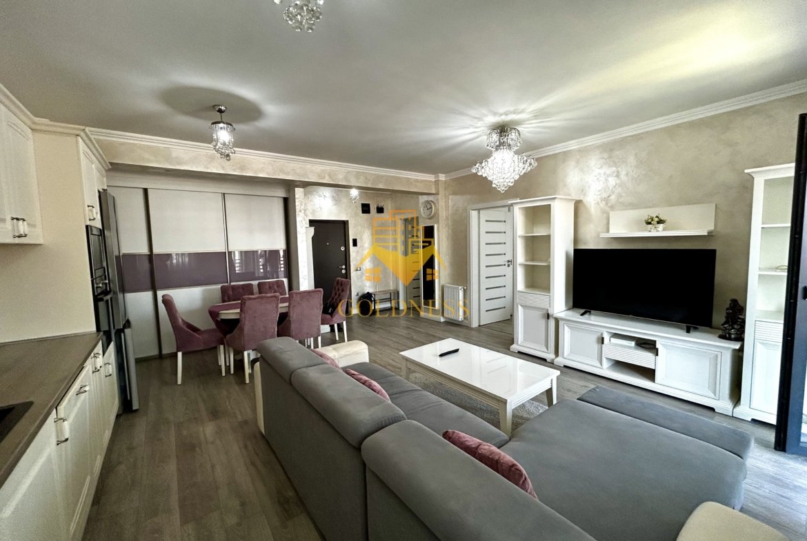 – living cu bucatarie open space complet utilată și mobilată, canapea extensibilă, loc de servit masa, dressing spatios