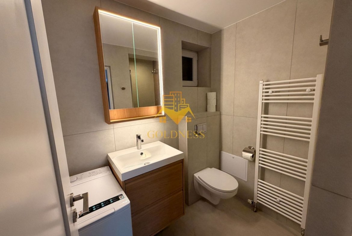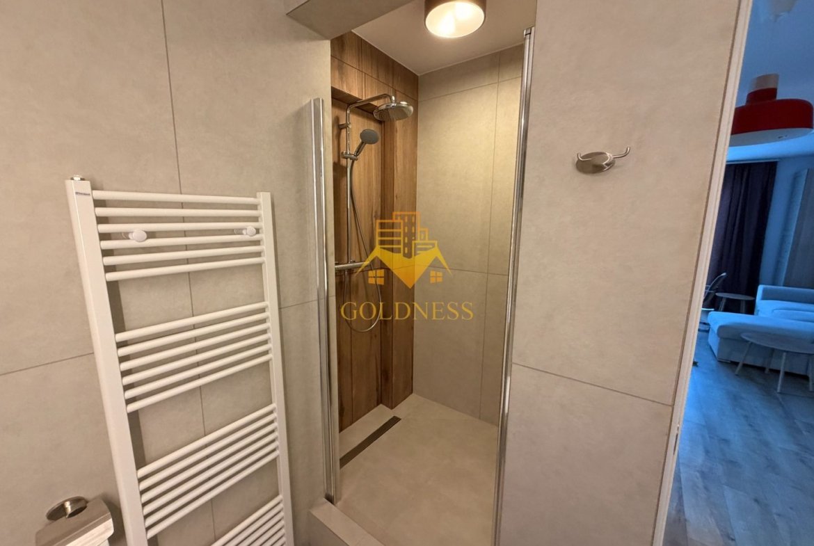 – baie cu cabina de dus, calorifer port prosop și dulap pentru depozitare.