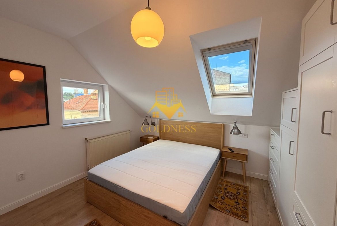 GOLDNESS Imobiliare vă propune spre închiriere un apartament cu 2 camere complet mobilat și utilat, la etajul 4 într-un imobil de 4 etaje, în Zona Ultra Centrala.