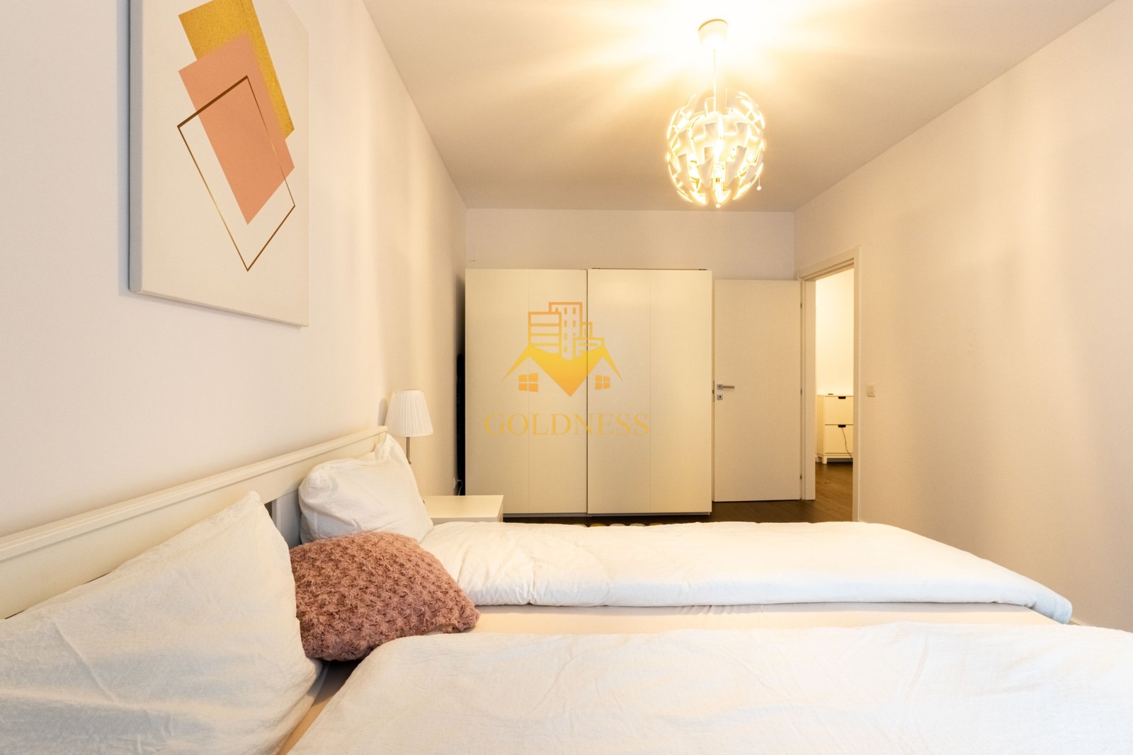– dormitor cu pat matrimonial, dressing, noptiere