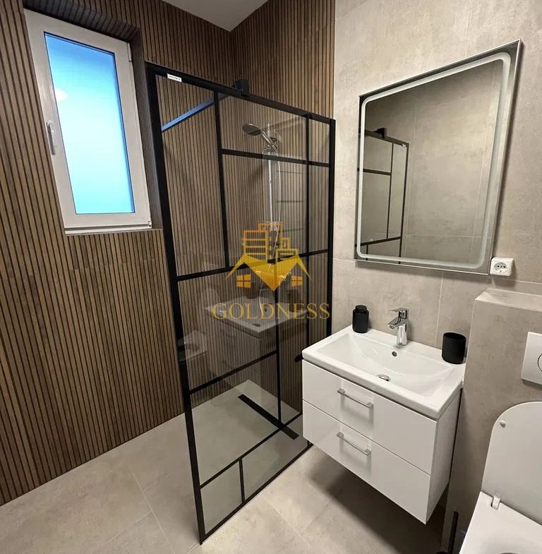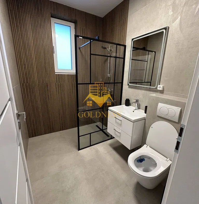 – baie cu cabina de dus, calorifer port prosop și dulap pentru depozitare.