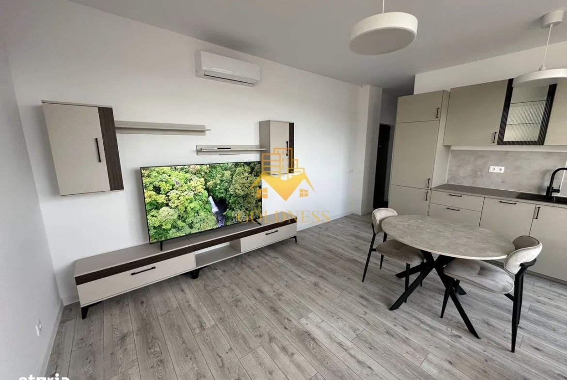 – living cu bucatarie open space complet utilată și mobilată, canapea extensibilă, loc de servit masa