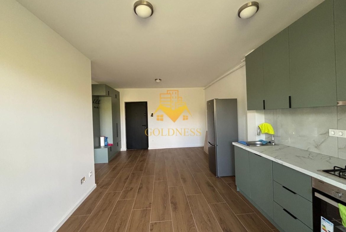 – living cu bucatarie open space complet utilată și mobilată, canapea extensibilă, loc de servit masa