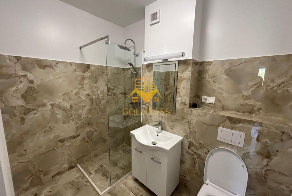 – baie cu cabina de dus, calorifer port prosop și dulap pentru depozitare.