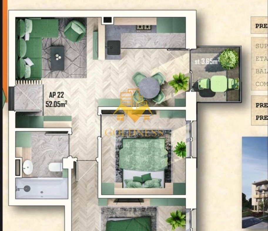 GOLDNESS Imobiliare vă propune spre închiriere un apartament cu 3 camere complet mobilat și utilat, la etajul 2 într-un imobil de 6 etaje, în Apahida.