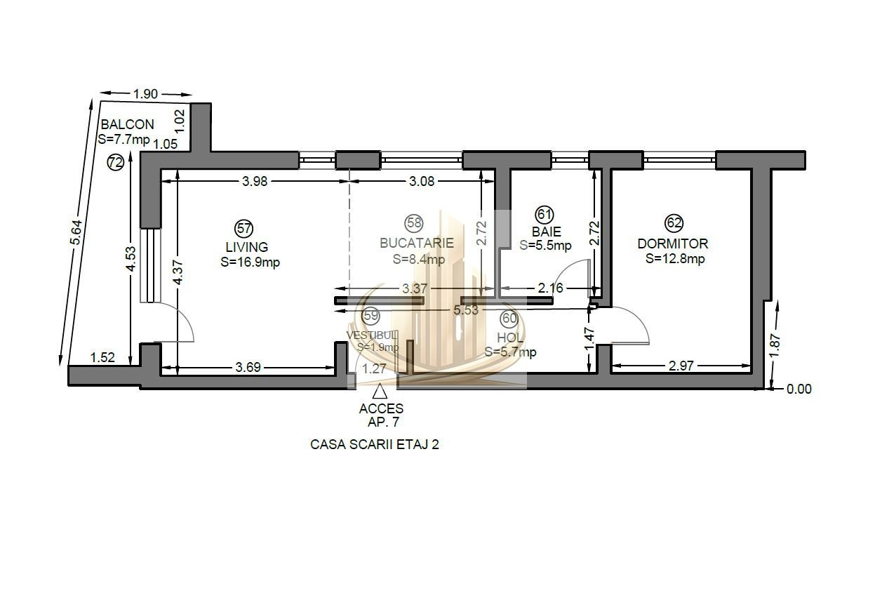 Suprafață totală: 58,9 mp