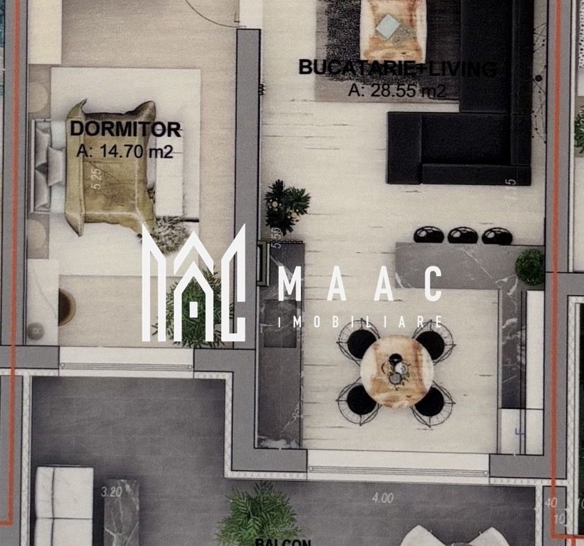 Living + bucătărie de 28,55 mp