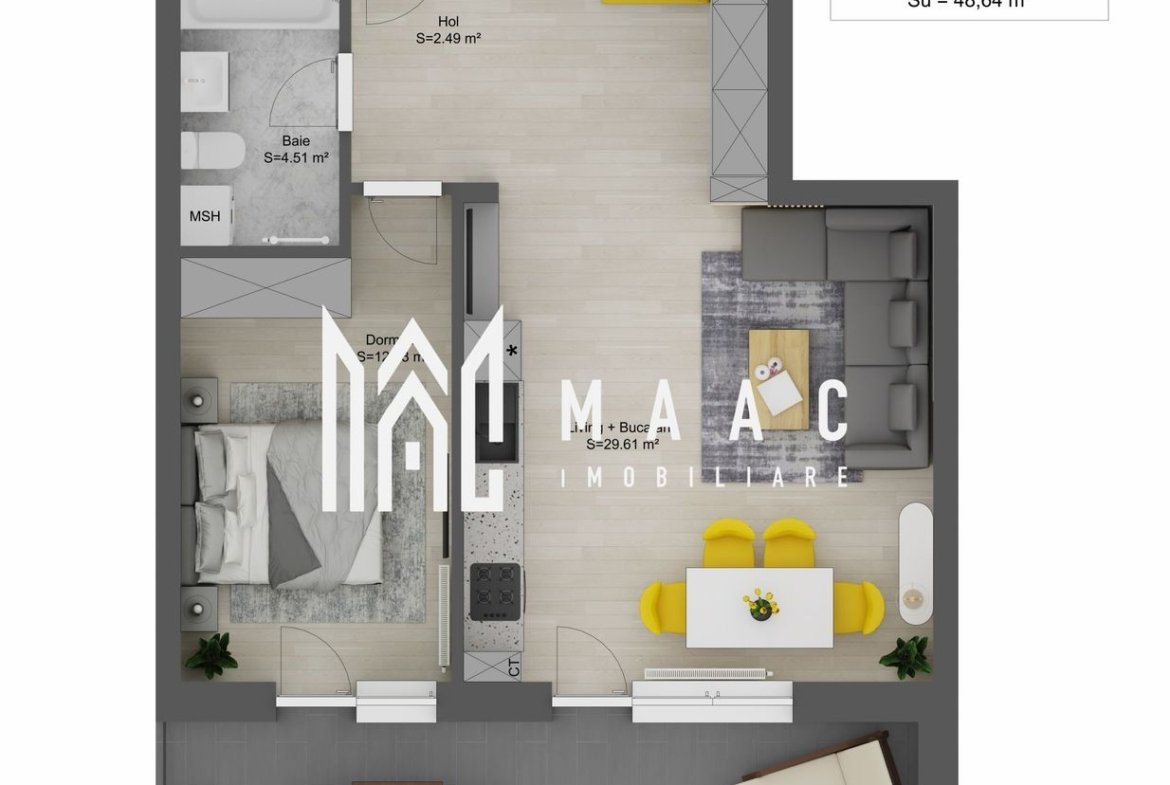 living + bucătărie: 29,61 mp