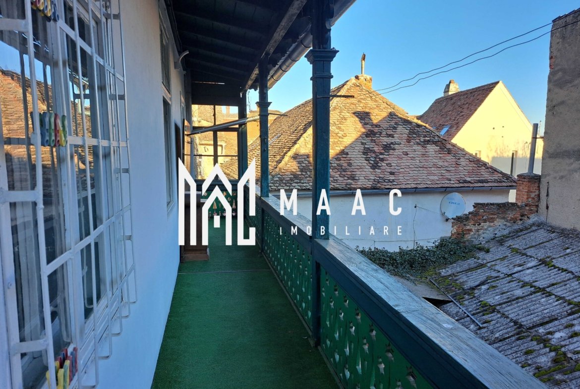 -Proprietatea se află într-o clădire bine întreținută, cu retragere de la trafic, aproape de Podul Minciunoșilor, Piața Mică și principalele obiective din centrul istoric al Sibiului