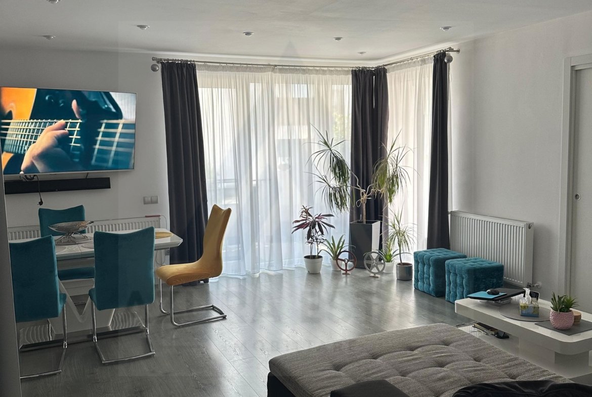 Agentia imobiliara Azura-Estate va propune spre vanzare un apartament premium, cu o suprafata utila de 83 mp, complet mobilat utilat, format din 3 camere, baie generoasa, terasa acoperita, curte privata si 2 locuri de parcare, situat intru-un imobil cu regim de inaltime scazut P+2, cu doar 4 apartamente, edificat din caramida in anul 2018 in Selimbar.