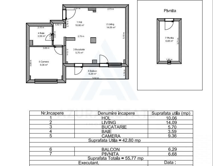 Agentia imobiliara Azura Estates va ofera spre vanzare un apartament modern, complet mobilat utilat cu o suprafata utila de 44 mp, format din living cu bucatarie open space, dormitor matrimonial, baie si balcon inchis in termopan situat la etajul 4 din 5 intr-un imobil edificat din caramida pe strada Siretului din Sibiu.