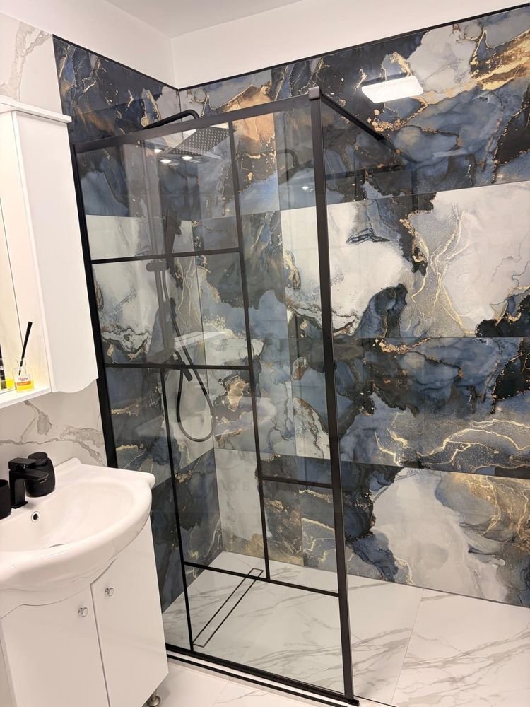 🚿 Baie 1 – dotată cu duș walk-in și mașină de spălat rufe