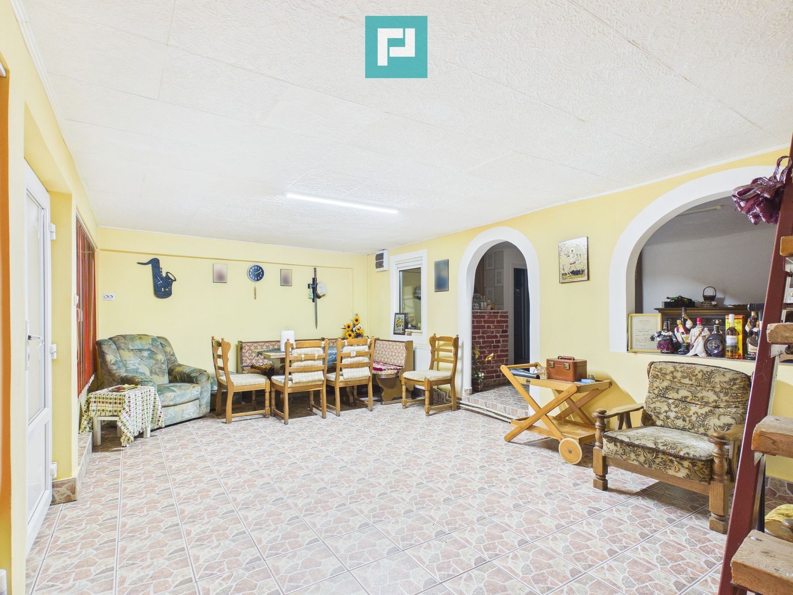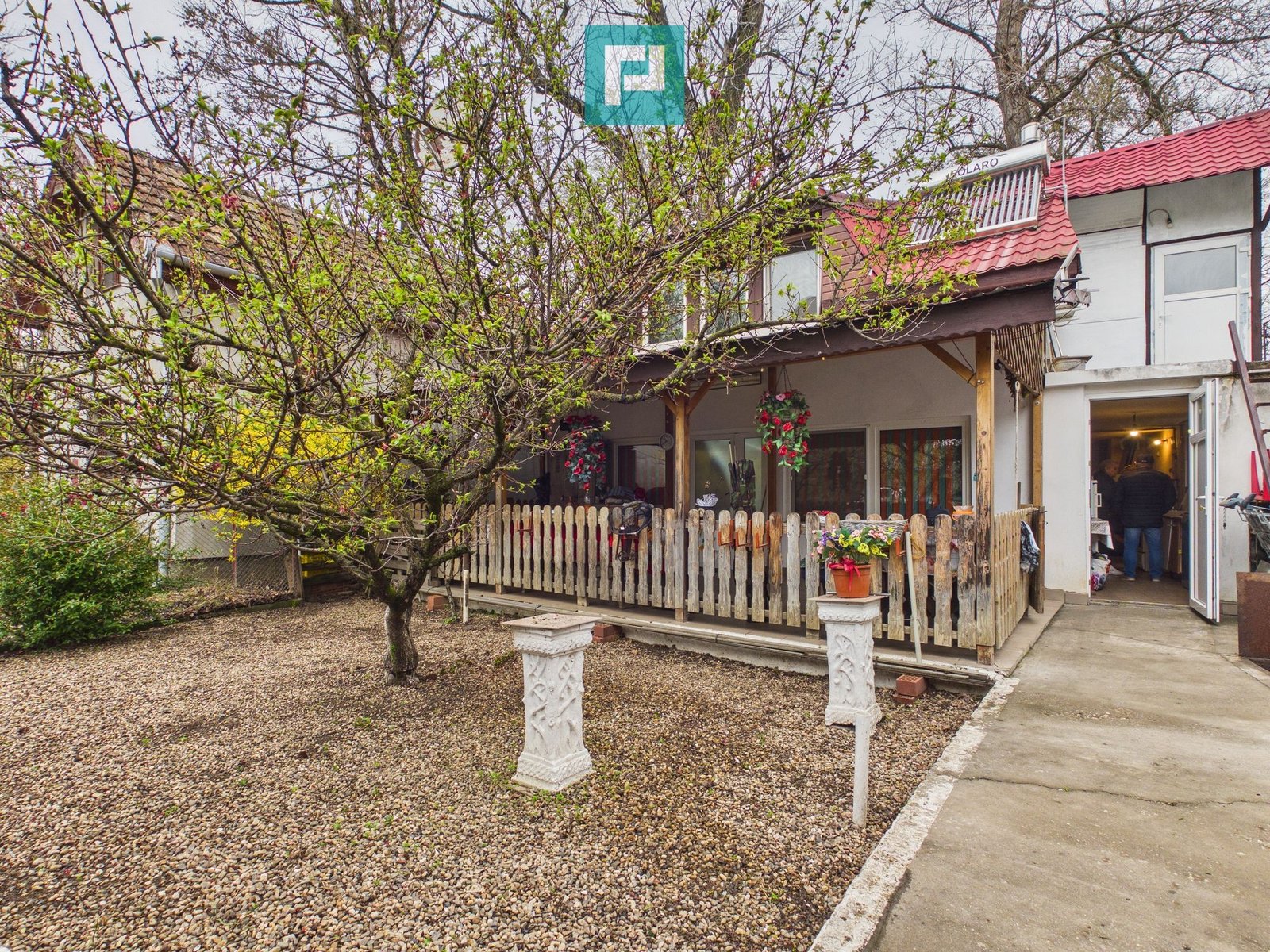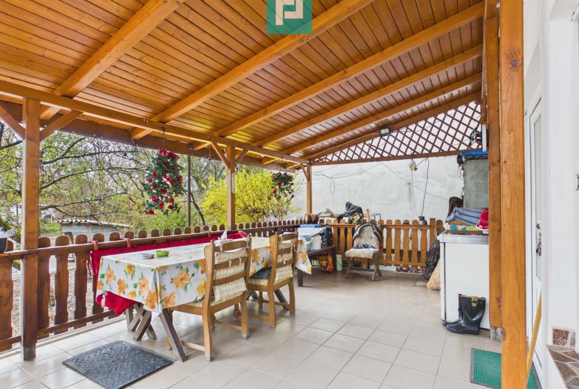 Casa beneficiază și de o terasă mare, perfectă pentru momente de relaxare în aer liber.