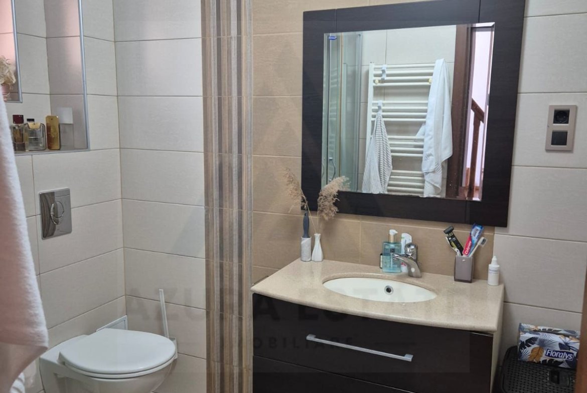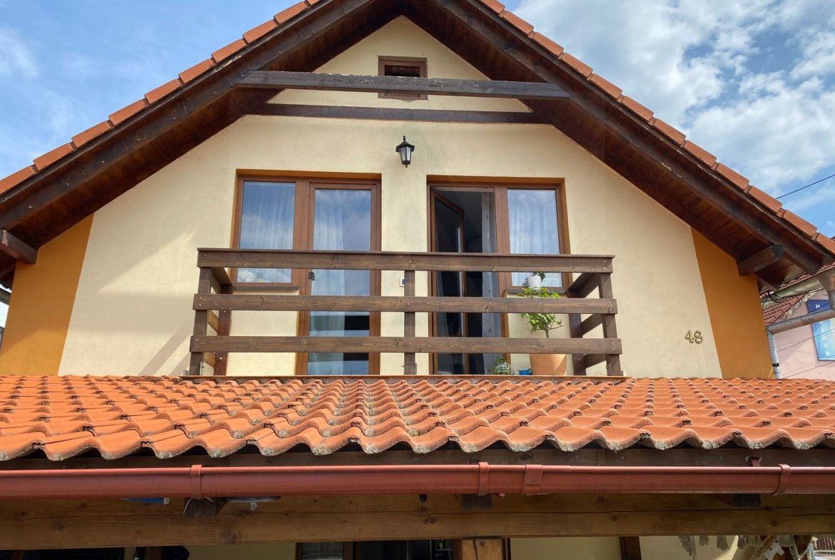 Agentia imobiliara Azura Estate va propune spre vanzare o casa moderna tip duplex, foarte bine intretinuta, cu o suprafata utila de 100 mp, formata din living, bucatarie inchisa, 3 dormitoare, 2 bai, 2 locuri de parcare, balcon si terasa acoperita, situat intr-un imobil edificat din caramida si izolat exterior in Cisnadie zona Centrala.