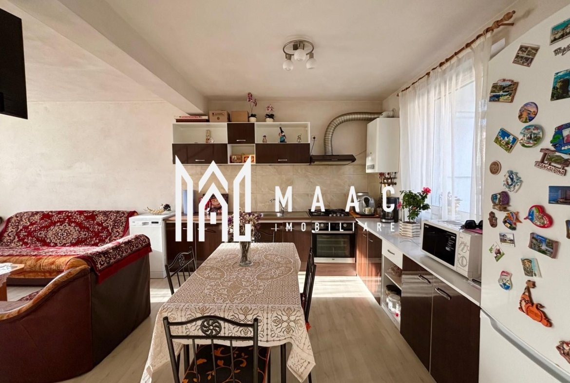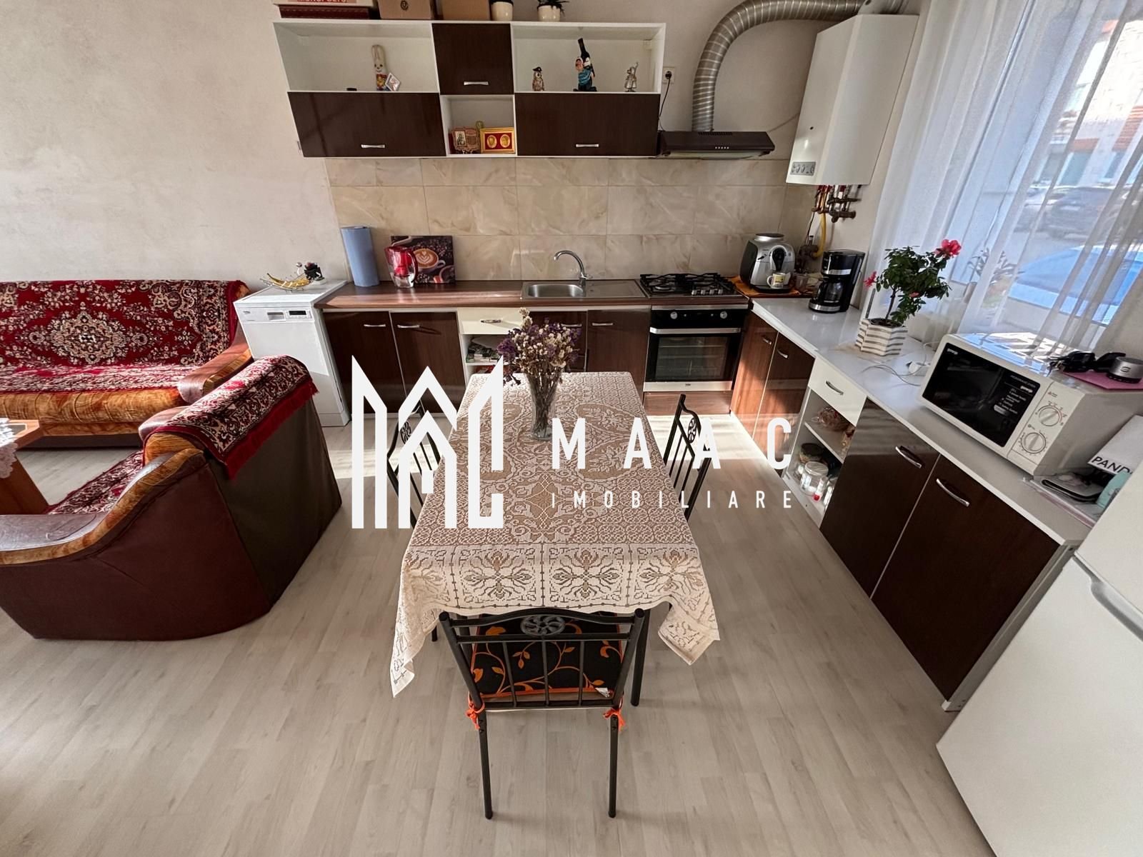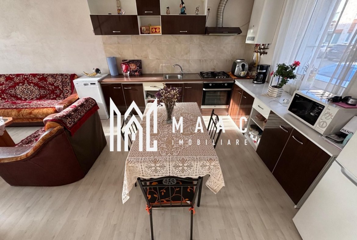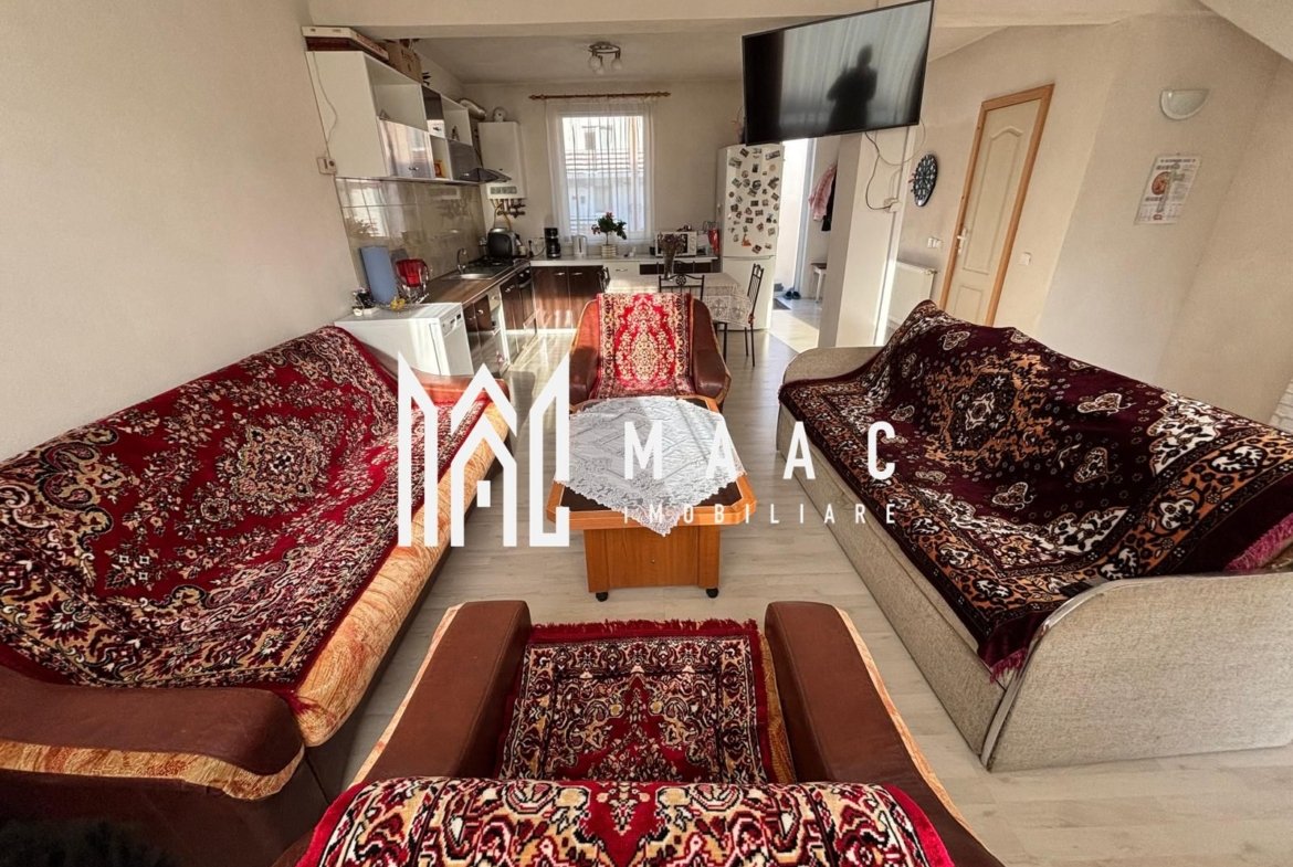 Living luminos cu bucătărie open space și ieșire directă în curte