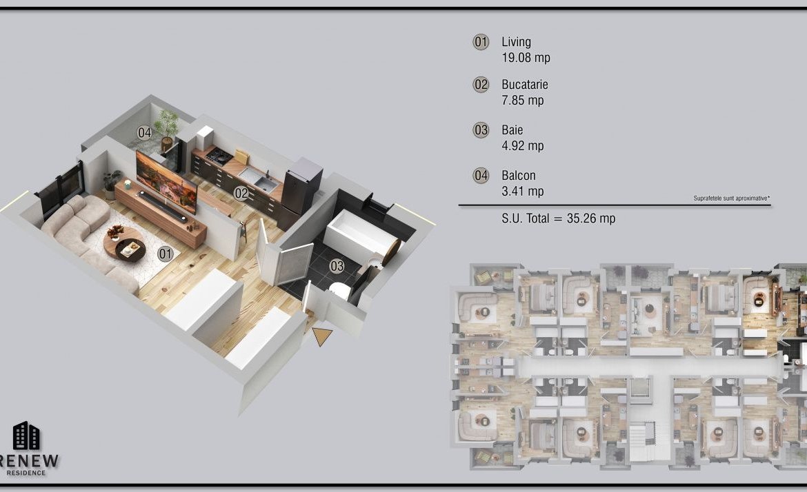 Vă prezentăm o garsonieră deosebită, situată în cartierul Militari Residence, într-un bloc modern cu regim de înălțime P+4, poziționat strategic pentru a vă oferi confort și accesibilitate.