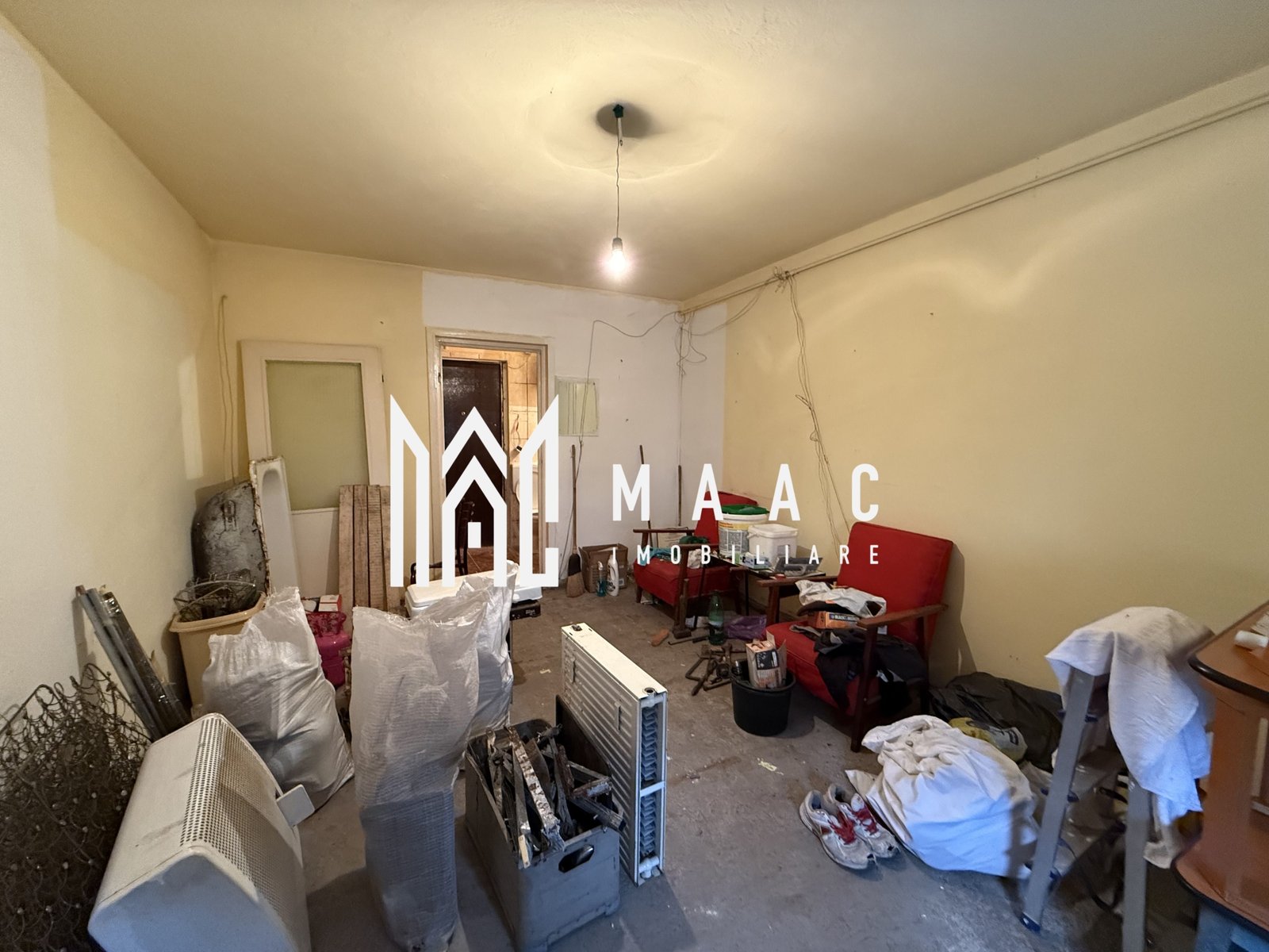 Garsoniera necesită renovare, oferind posibilitatea de personalizare după preferințe.