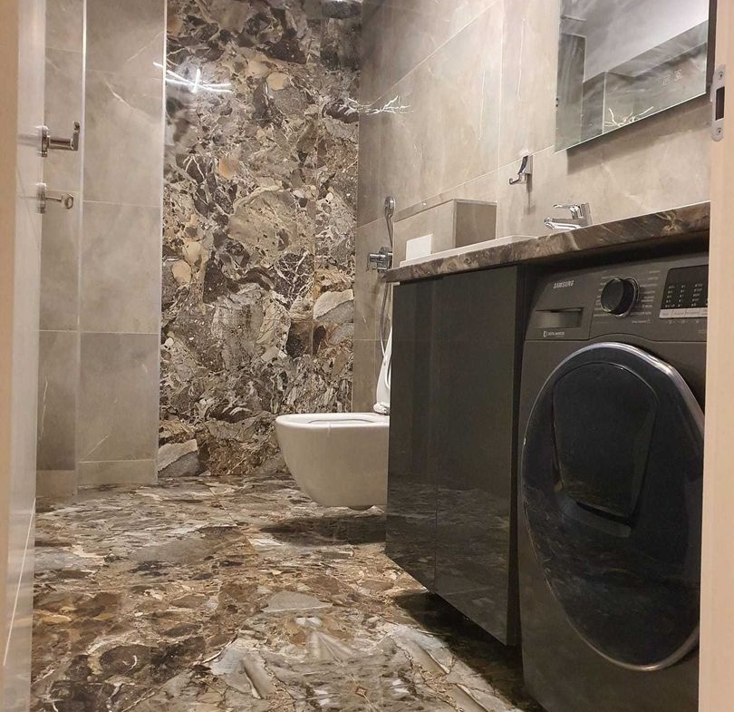 Mobilat si utilat cu electrocasnice de ultima generatie: plita si hota Franke, cuptor si frigider Samsung, masina de spalat vase incorporabila Whirlpool, masina de spalat rufe cu uscator Samsung.