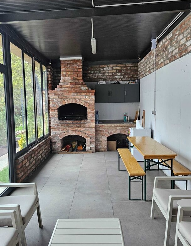 Loc de joaca pentru copii, zone verzi cu irigare automata, foisor acoperit cu mobilier, TV si internet pentru barbeque si relaxare.