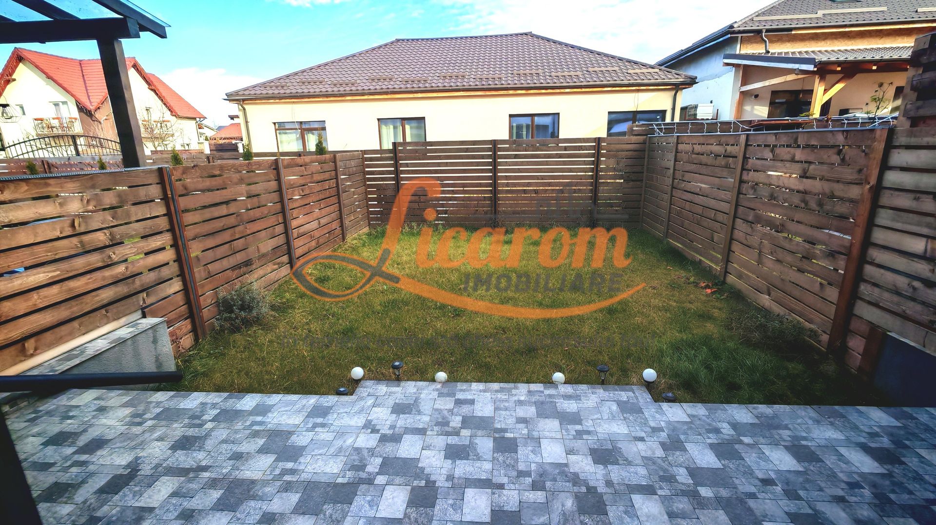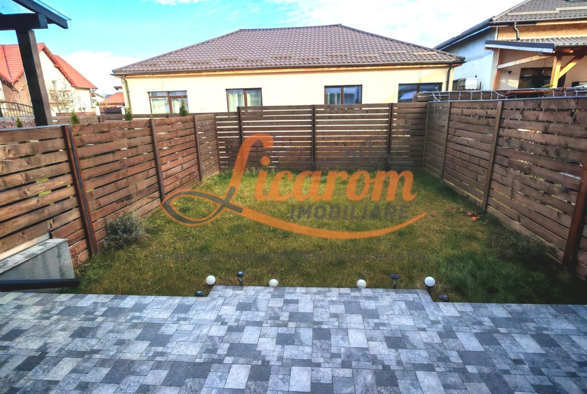Terenul proprietatii este dispus pe partea din fata casei,unde se poate parca si masina,si gradina din spate care este ingradita,are intimitate si unde se pot crea amintiri frumoase cu familia.