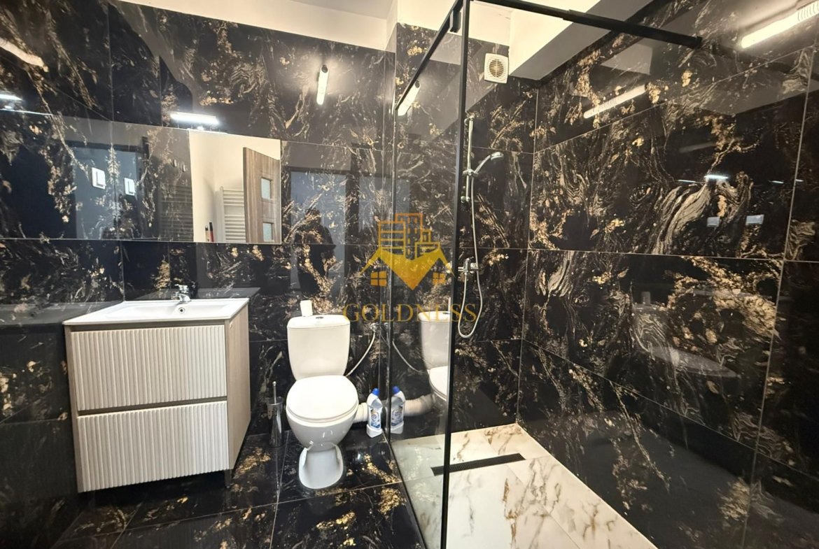 – baie cu cabina de dus, calorifer port prosop și dulap pentru depozitare.