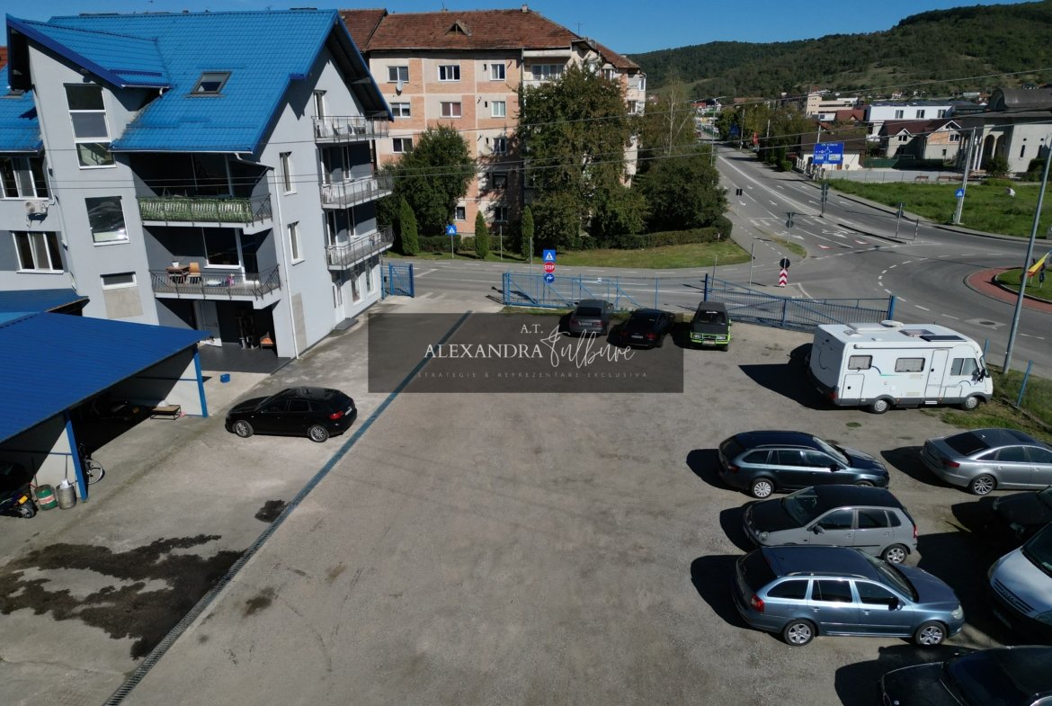 Amplasată strategic în Hațeg, județul Hunedoara, direct la drumul național care conectează Deva– Petroșani- Caransebes, proprietatea beneficiază de vizibilitate excelentă și trafic constant, fiind poziționată chiar vizavi de Kaufland Hațeg. În orașele de dimensiunea Hațegului, astfel de poziții devin în timp puncte naturale de dezvoltare comercială și rezidențială.