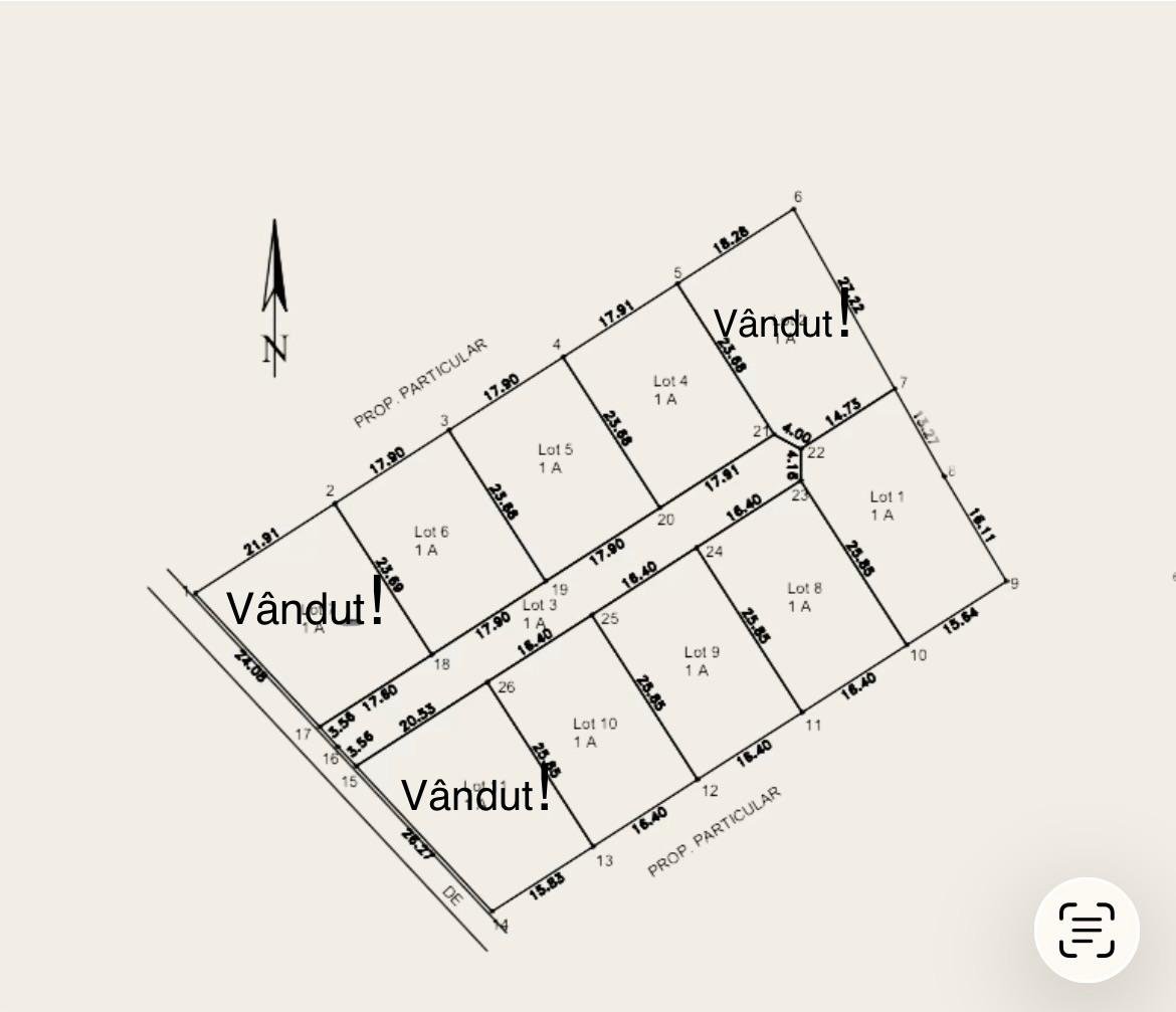 Terenul este împărțit în loturi de aproximativ 430 mp, cu forme regulate și deschideri de 18 ml la drumul privat, ideale pentru proiecte rezidențiale viitoare sau investiții inteligente. Poziționarea ușor înălțată oferă o priveliște panoramică asupra zonei, iar cadrul natural asigură liniște, intimitate și aer curat – un echilibru perfect între natură și proximitatea orașului Iași.