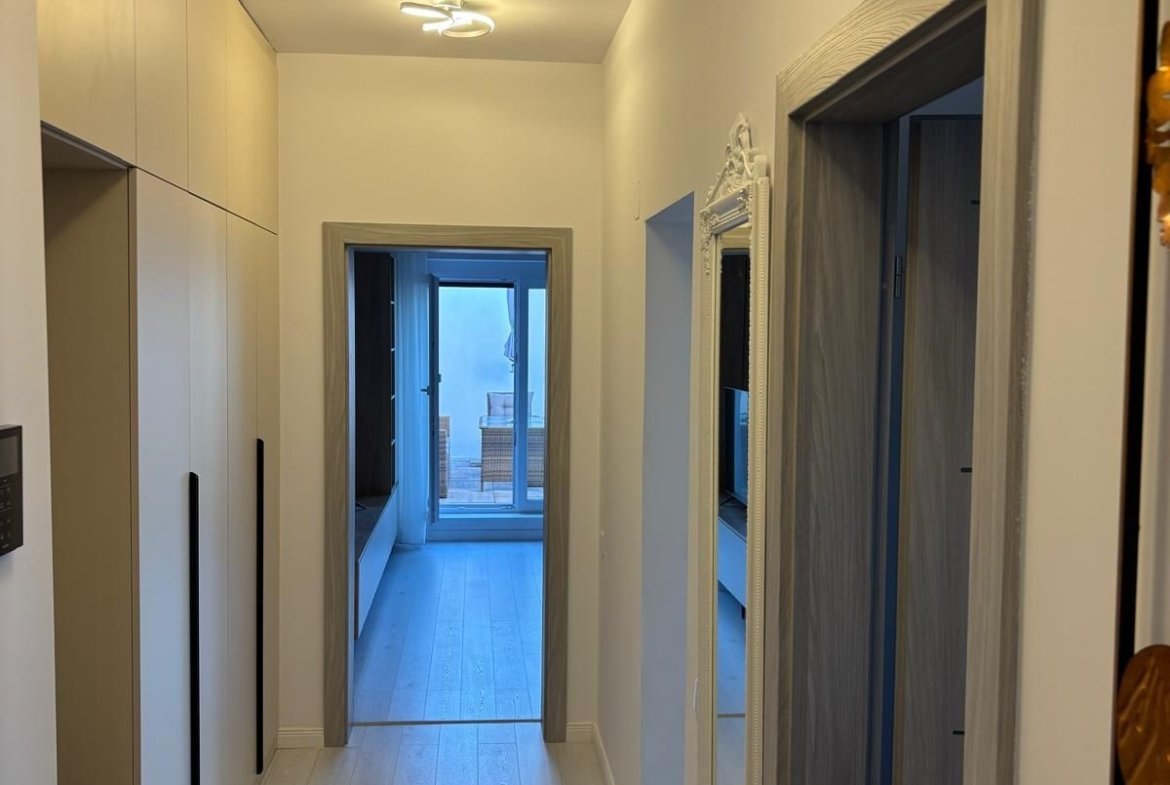 VIANTO PROPERTIES va propune spre inchiriere un penthouse situat la ultimul nivel al unui imobil nou, cu lift, acest penthouse ofera o experienta urbana rafinata, definita prin lumina naturala, spatii aerisite si finisaje contemporane. Proprietatea este complet mobilata si utilata ultra-modern, fiind pregatita pentru mutare imediata.
