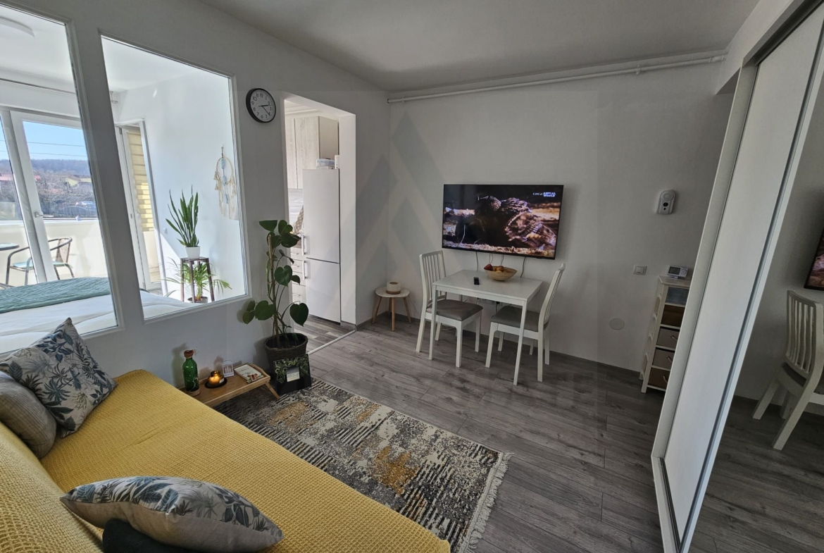 Agentia imobiliara Azura Estate va propune spre vanzare un studio modern cu o suprafata utila de 31.5 mp, compus din living, dormitor, bucatarie, baie, balcon si parcare privata in zona Arhitectilor din Sibiu, intr-un imobil cu regim de inaltime scazut, edificat si izolat in anul 2021.